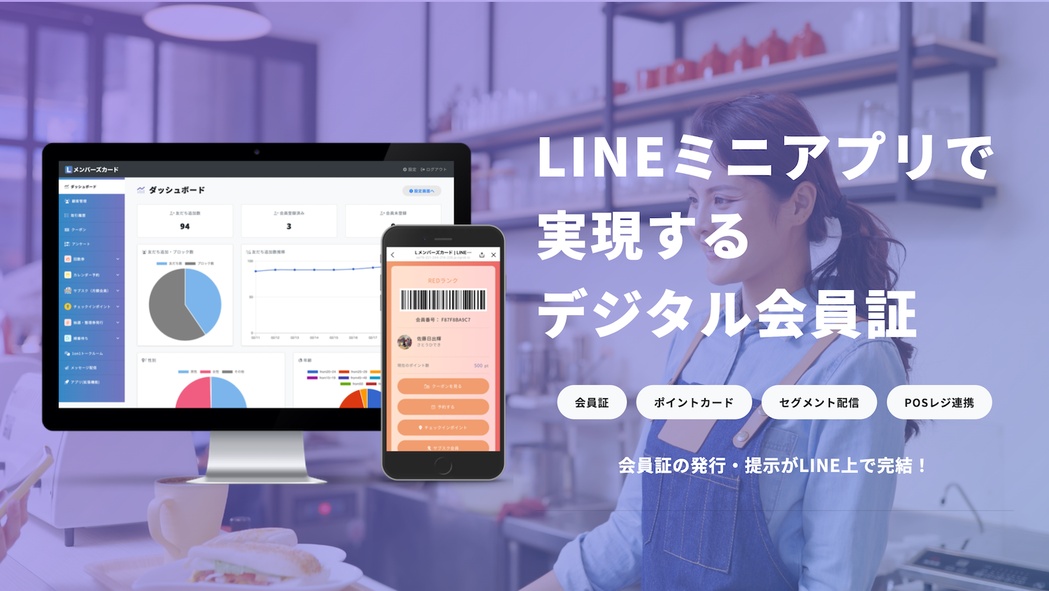 です。Lメンバーズカードを店舗や企業に導入することで、スマホアプリのインストールや面倒なログイン作業が不要で、LINEさえあればすぐに会員証・ポイントカードの提示が可能