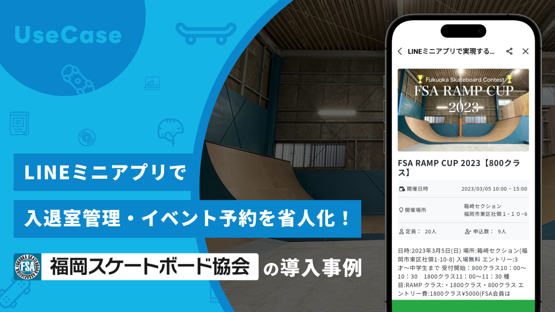 福岡スケートボード協会は、広く福岡県の一般市民を対象にスケートボードの普及振興を図るため、2021年8月に設立されました。2022年8月には、会員専用練習施設『箱崎セクション』を福岡市東区にオープンし、会員管理・施設の入退室管理が一元化できるシステムの導入を検討されておりました。