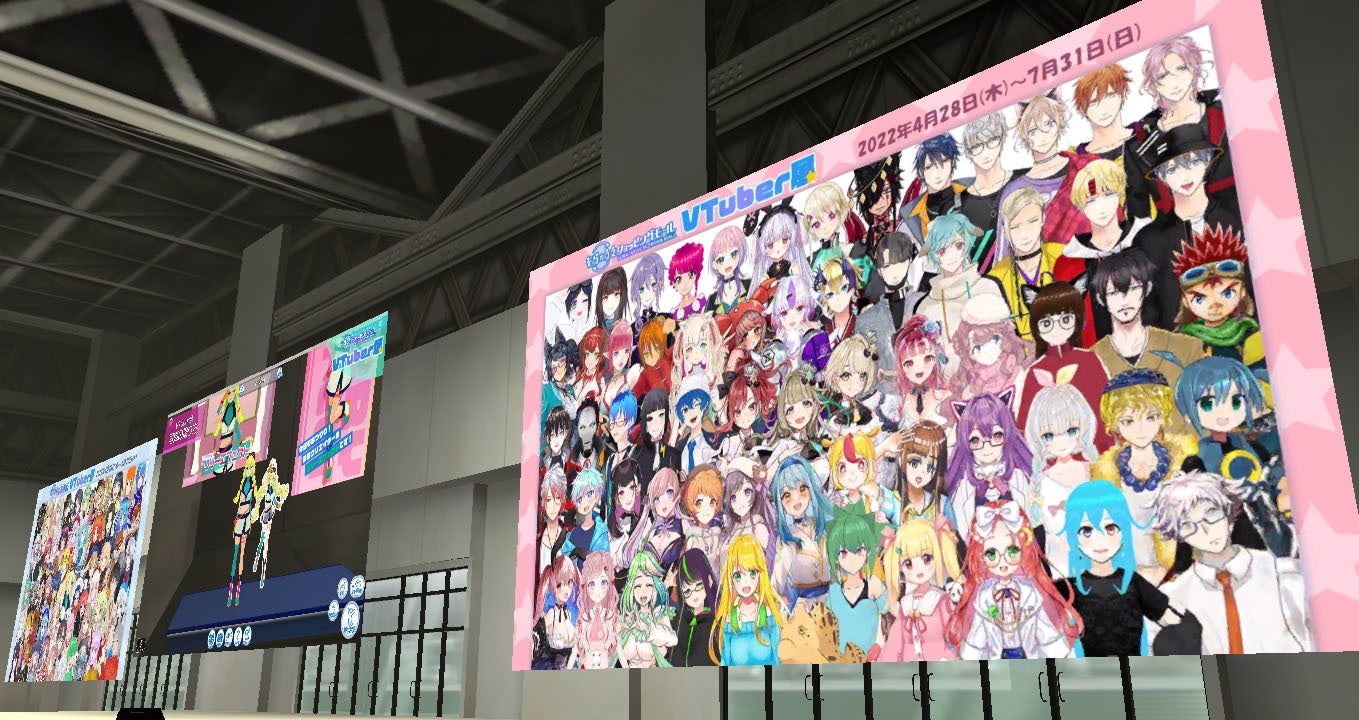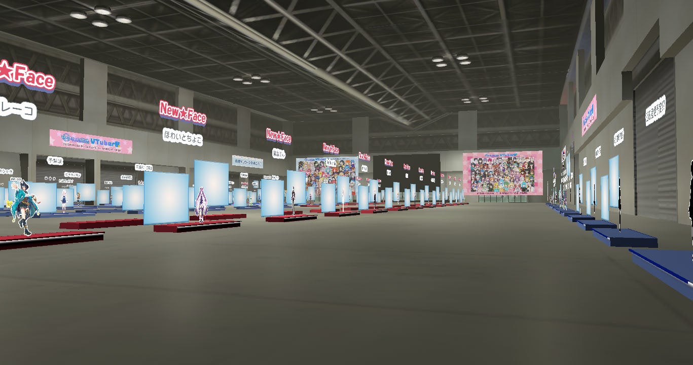 随時更新することを当初は考えていたのですが、お気に入りのVTuberを観にモールに決まった時間に来場されるファンの方がいらっしゃることに気づき、60名ごとにVTuber時計に追加させていただくことを運用ルールとさせていただくことにいたしました。また、モール内にモーターショーなどを開催するような展示場をモチーフとした特設イベント会場にて各VTuberのカットアウトパネルや動画、プロフィール画像を展示した『VTuber展』を開催していますが、こちらも新メンバーを加えさせていただくと共に、ユニット、グループ紹介コーナー、大型スクリーンとミニステージを追加配置し、ご希望いただいたVTuberの動画上映や、ステージイベントなどを開催したり、記念撮影、配信に来場いただく機会を更に増やします。
