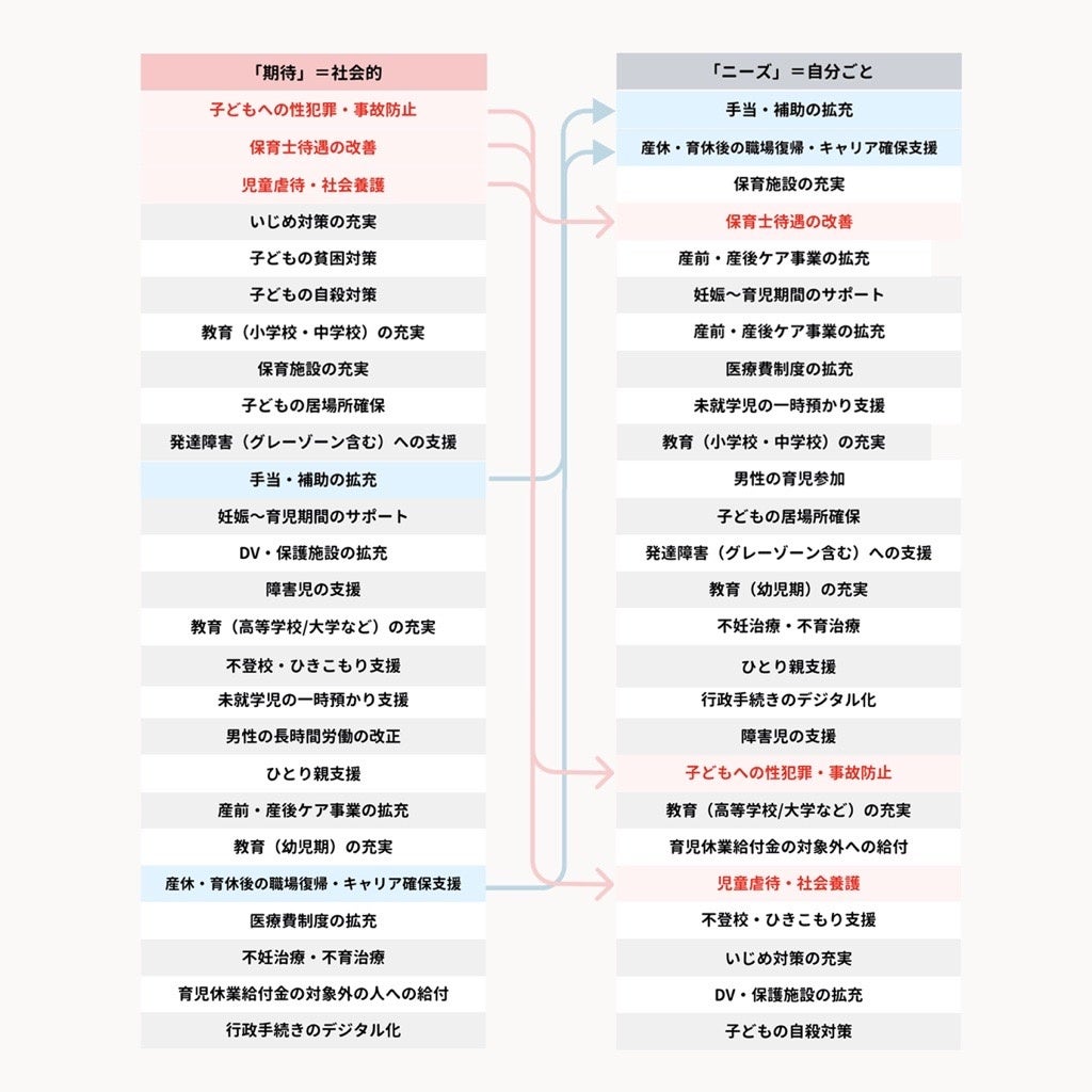 社会的に解決すべき問題と、ママたちが直面している問題はそれぞれ異なるものの、どちらも解決すべき大事なことばかり。政策とママたちの直面している問題、2つの視点を持ちながら政府が課題に取り組んでいくことが期待されます。