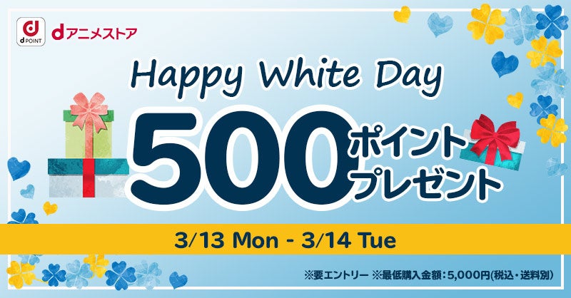 dアニメストアから皆様方へホワイトデーのプレゼント!エントリーの上5,000円以上ご購入で、500ポイント分のdポイントをプレゼント!