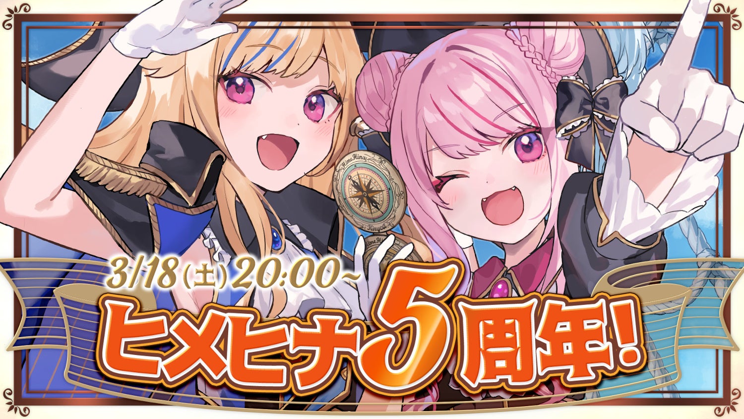 生放送では田中ヒメ、鈴木ヒナの2人がすごろく対決をしながらHIMEHINAの活動5年分を振り返ります。すごろくでは「電話マス」に止まるとVTuber友達に緊急凸電話をする企画も実施。新情報発表や記念ライブも予定していますのでぜひご覧ください。