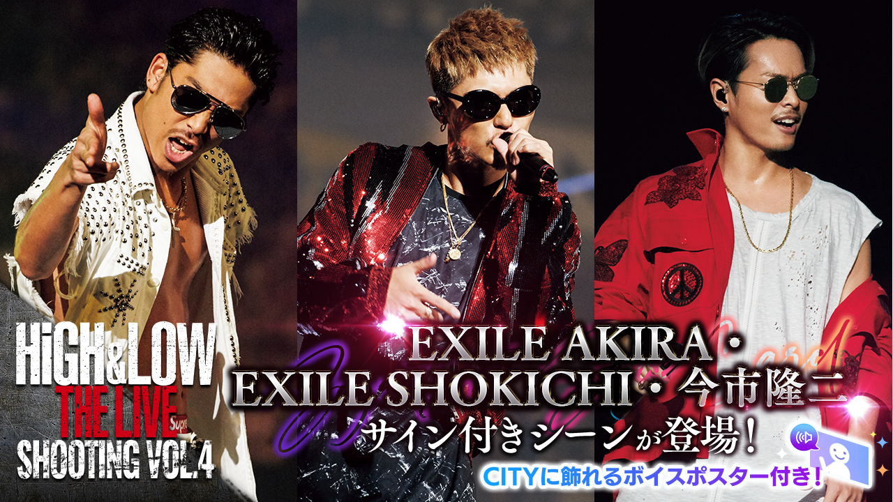 6月30日(木)17時より「HiGH&LOW」とのコラボを記念した【HiGH&LOW THE LIVE】SHOOTING vol.4・vol5を開催いたします。排出されるシーンカードはメンバーのサイン付きとなっており、更に獲得したシーンカードをスペシャルトレーニングすることで、C I T Yに飾れるVOICEポスターも獲得できる特別仕様となっております。
