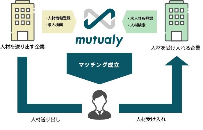mutualy(ミューチュアリー)とは、雇用調整が必要な企業様と人材不足の企業様をオンラインでマッチングする「在籍出向」支援サービスです。