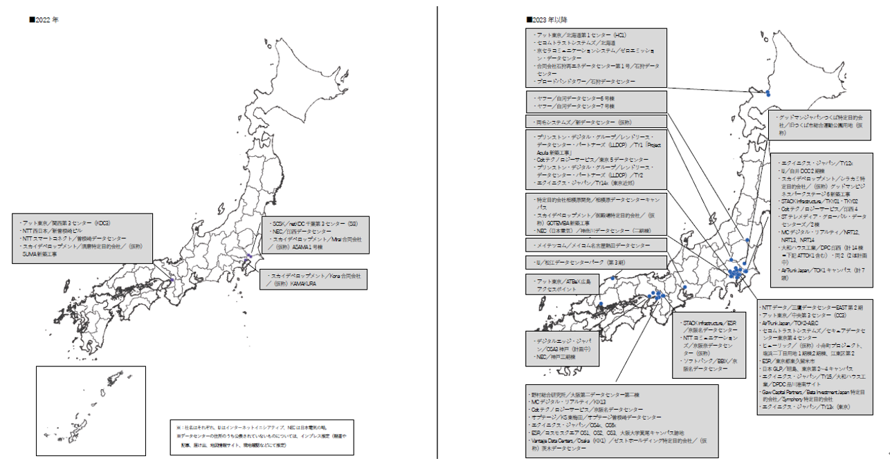 また、総務省のデジタルインフラ強靱化事業は実施(新設費用確定・補助金請求)が2026年3月(令和7年度末)まで、経済産業省の地方拠点整備事業により造成した土地にて早ければ2025年からデータセンターが竣工・開設され始める見通しであることも、ハイパースケール型の増加が長期間維持される要因になっています。