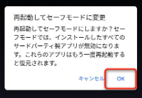 Step3:セーフモードに変更とメッセージが表示されるので「OK」をタップします。