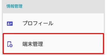 Step1:「設定」を開いて「情報管理」から「端末管理」へ進みます。
