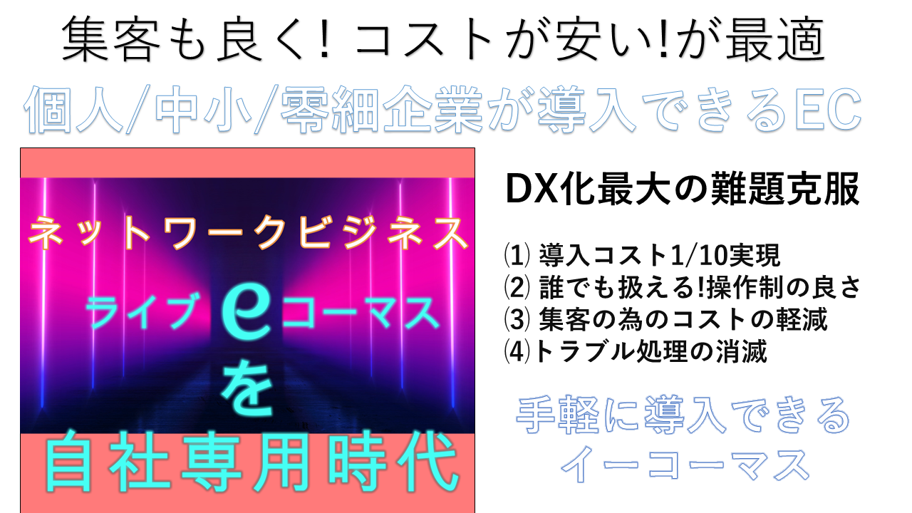 ★ライブeコーマスとは ECサイト(オンライン販売)とライブ配信を組み合わせた販売形態 略:フリマと自社店販売の良いとこ取りネットワークビジネス