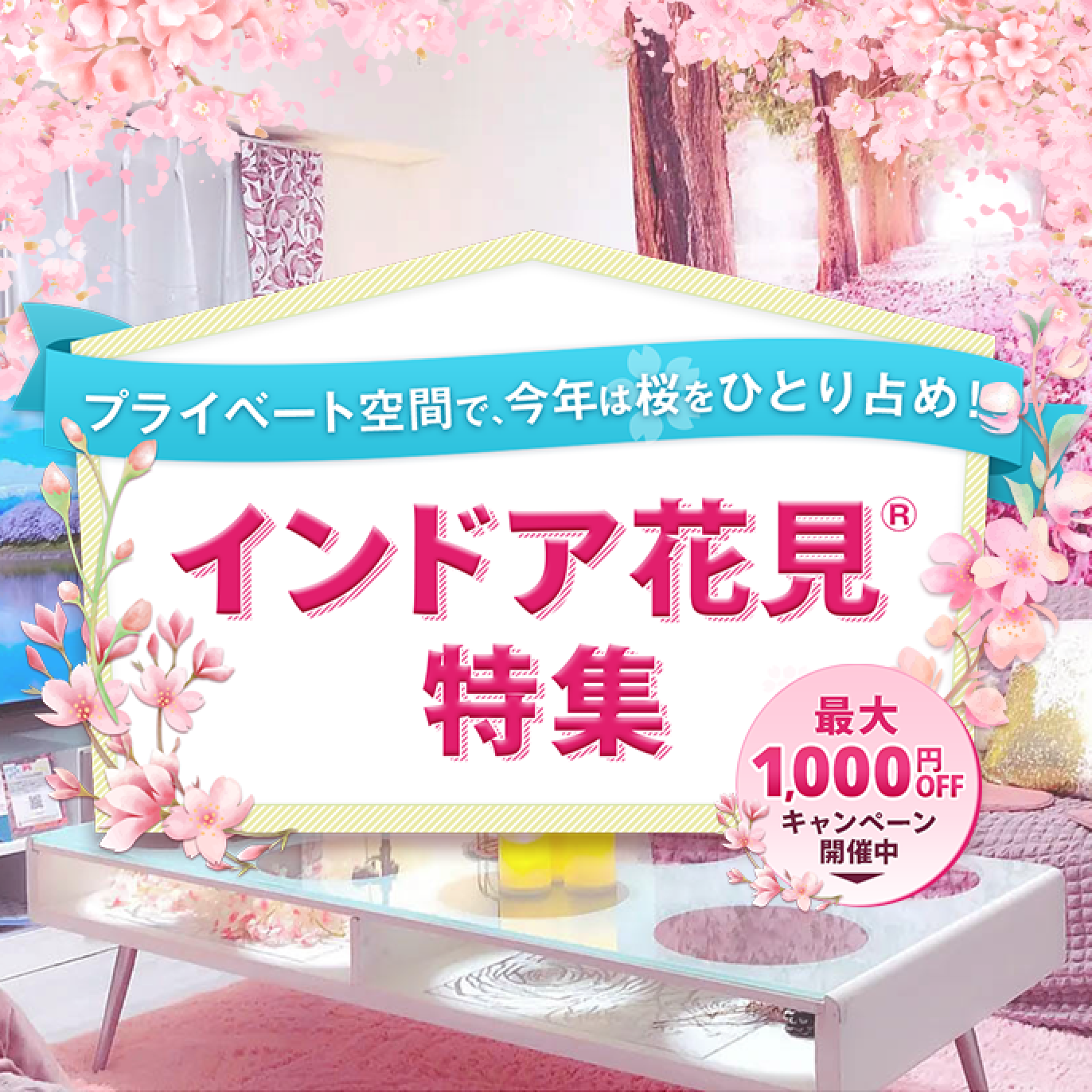 インドア花見®︎キャンペーン期間に誰でもご利用いただける500円オフクーポンと1,000円オフクーポンを先着順で配布いたします。お花見の新しいスタイル「インドア花見®」をお得に満喫することができます。