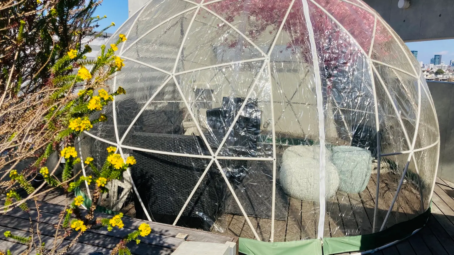ドームテントでお花見!屋上テラス付きでインドア・アウトドアのいいとこ取り