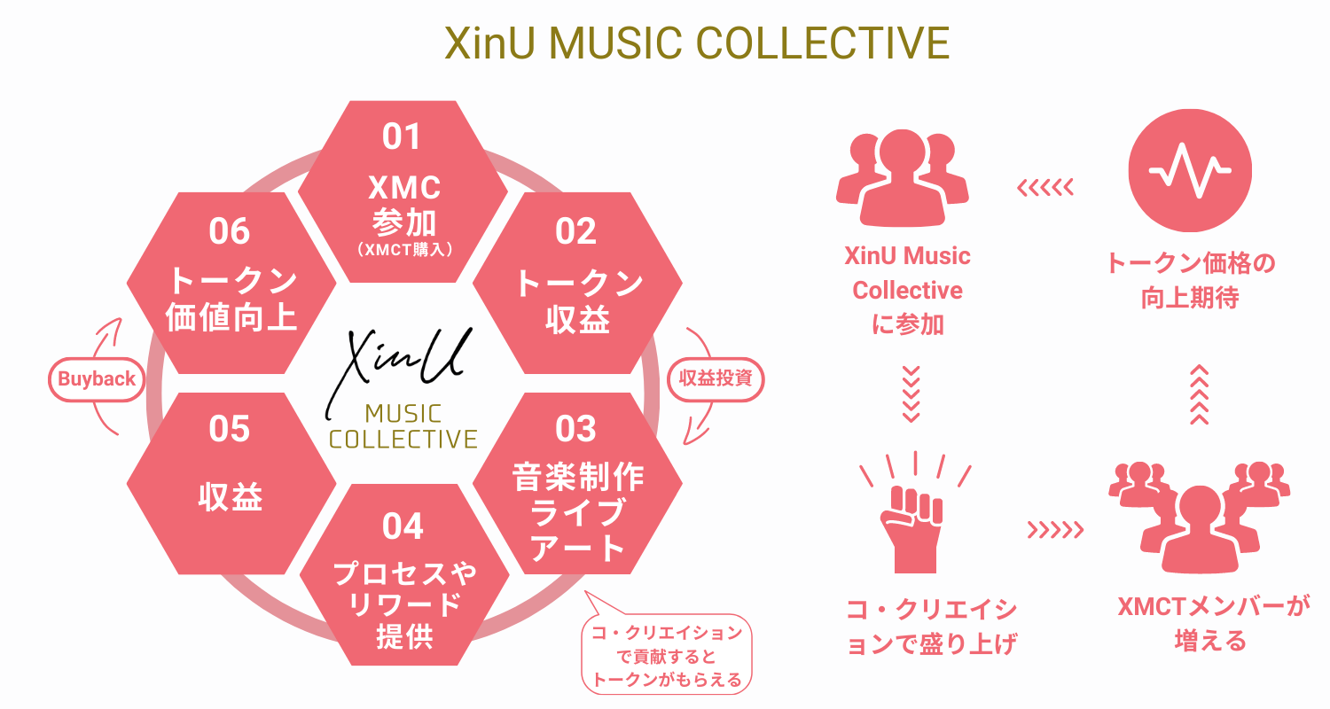 XMCT保有者は、より身近な形でXinUの音楽、アイデンティティに触れることができ、双方向のコミュニケーションで生まれたアイデアを作中に取り入れるなど、”皆で同じ興奮や喜びを共有すること”が大切な要素となっています。