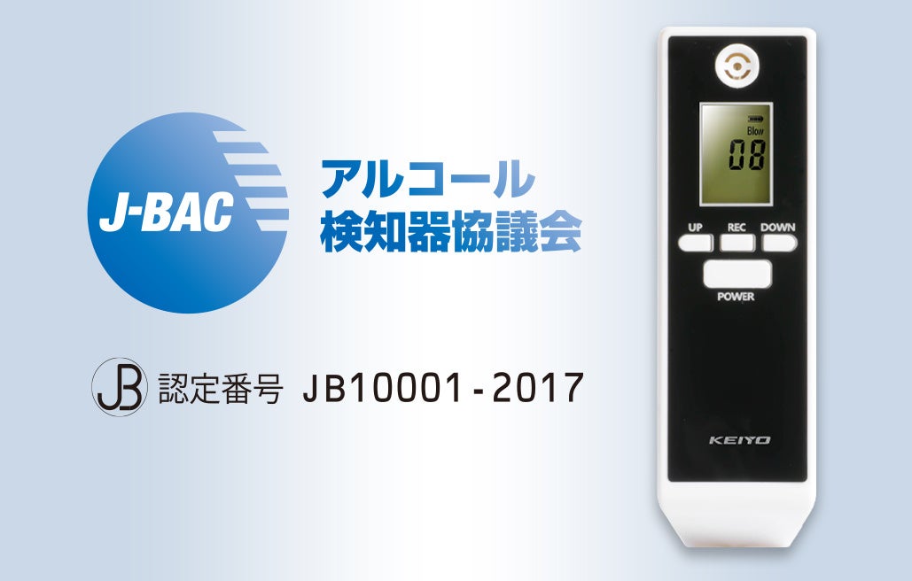 弊社ではこの厳しい法令改定に基づき、アルコール検知器の品質向上と普及を通じ、飲酒運転根絶と健康管理を提唱している営利を目的としない組織であるアルコール検知器協議会(J-BAC)の正会員として、本製品を開発しまして正式に認定機種として登録されました。