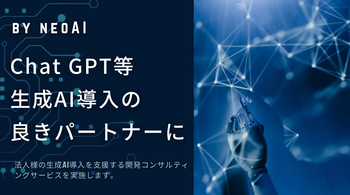 株式会社neoAIは、「時代のうねりを日本の成長に転換する」をVisionを掲げる東京大学発AIスタートアップです。法人向けAIソリューション事業と生成AIサービス事業を展開しております。大手上場企業からスタートアップまで、幅広い企業にAIソリューションを提供している他、「Dream Icon」「Dream Animal」等の生成AIを活用したサービスを展開しております。