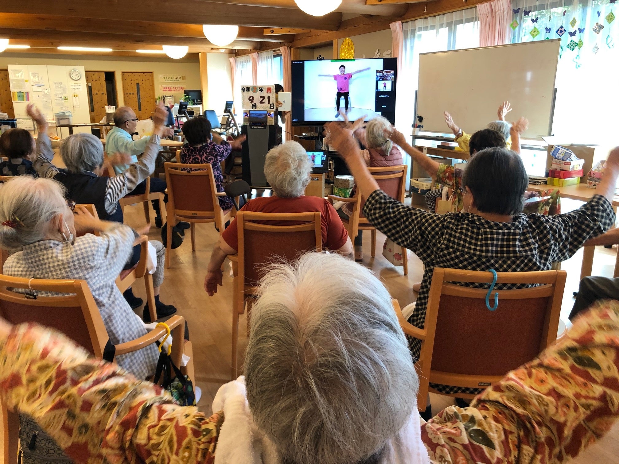 動画配信とは異なり、生配信で参加型が特徴の介護施設向けのプログラムです。