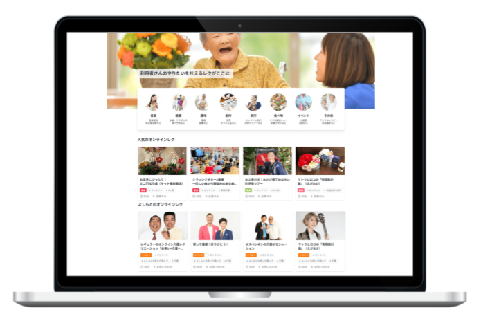 コロナ禍となり、外部人材を招いたレクやイベントの開催が難しい状況になってからはオンラインを通じたレクリエーションの提供に取り組み、全国約1,000施設以上、約2万名を同時にリアルタイムで繋ぐオンラインレクイベントを複数回実施してきました。そんな中、現場からは毎日のようにオンラインレクのイベントを実施してほしいと現場から声をいただき、本サービスを開始することになりました。