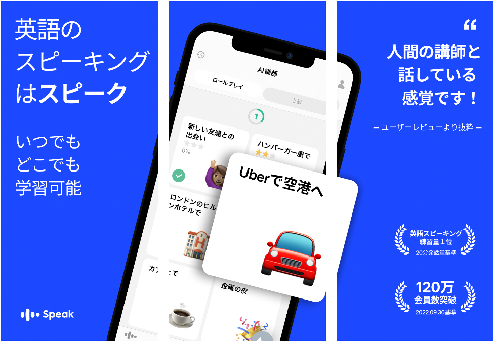 ■ 英語スピーキング特化型学習アプリ「スピーク」の特徴