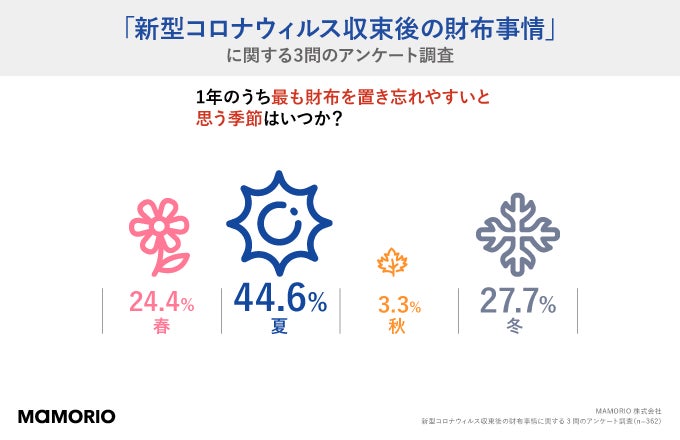 ・最も財布を置き忘れやすいと思う季節「夏」が最多の44.6%
