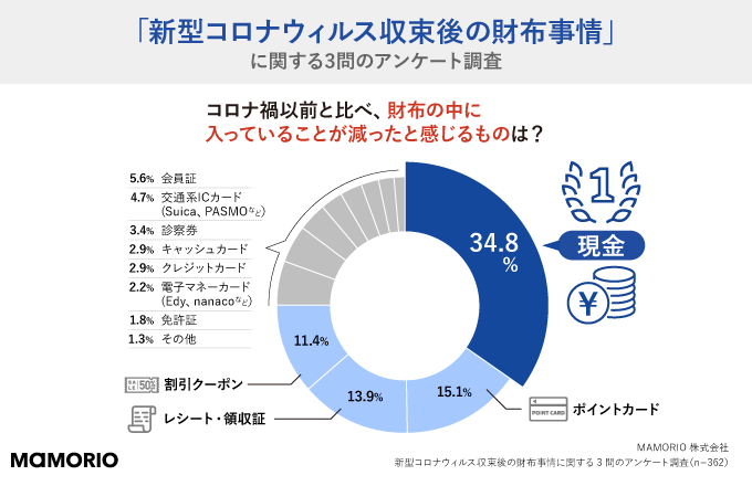 QRコードやスマホ本体のワンタッチ決済を含むキャッシュレス化の進行により、様々な店舗やオンラインショップで現金以外の決済方法が普及しています。さらに、約3年前より猛威を奮った新型コロナウイルスの影響による外出自粛や行動制限の流れも徐々に緩和の方向へ進み、遠方への外出や旅行を含め、日常生活はコロナ禍以前のものへと戻りつつあります。 Bluetoothのビーコンと独自のスマートフォンアプリで紛失防止事業を手掛けるMAMORIO株式会社(本社:東京都千代田区、代表取締役社長 増木大己、以下MAMORIO社)は、こうした昨今の世間情勢を踏まえ、3/12の「財布の日」にちなんで、全国10代~70代の男女500名を対象に「新型コロナウィルス収束後の財布事情に関する実態調査」をインターネットにて実施いたしました。