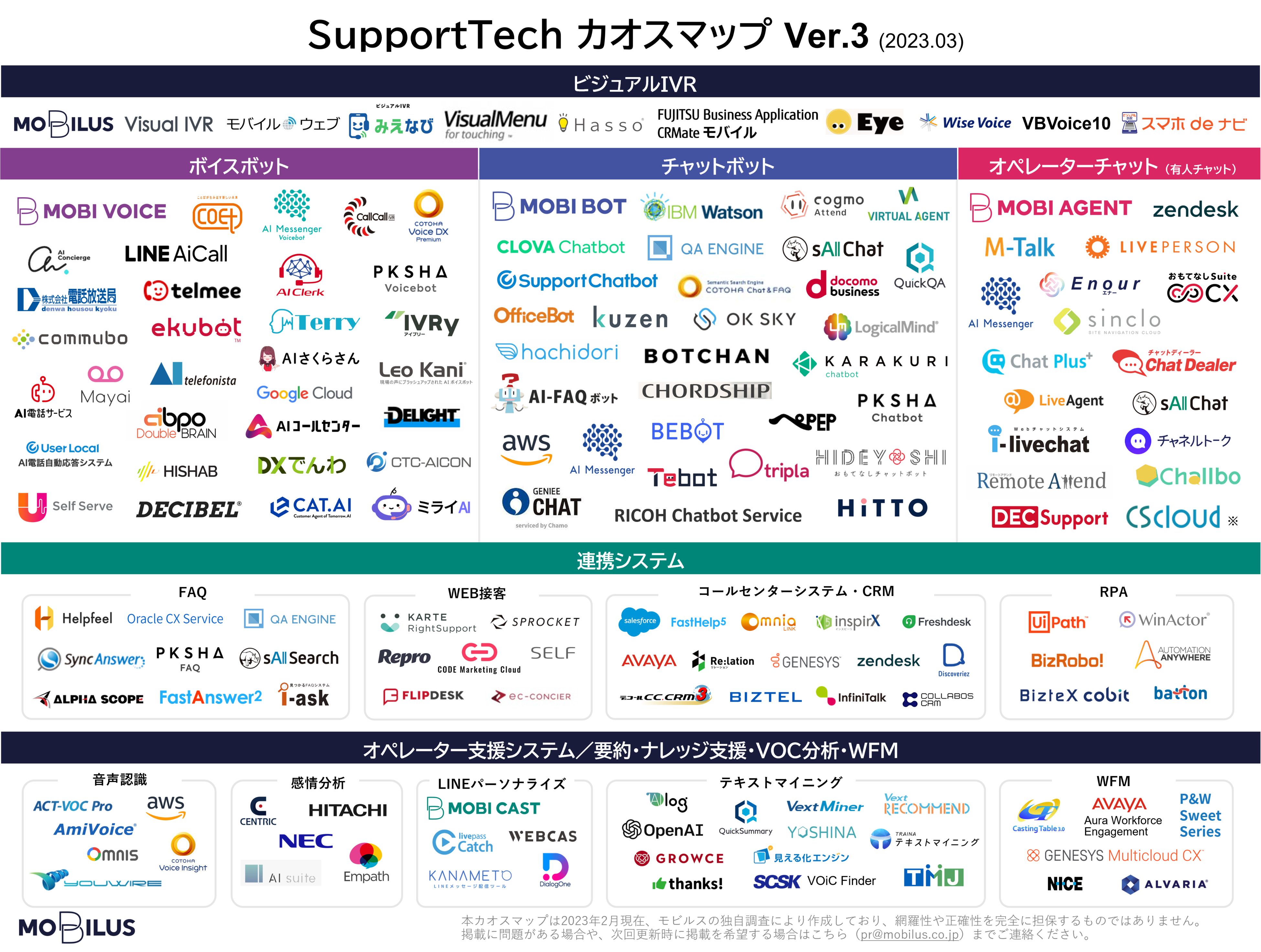 「SupportTechカオスマップVer.3(2023.03」は、「SupportTech」業界の現在地を見える化することを目的に、国内で展開する関連サービスを分類したものです。今回で第三弾の発表となります。