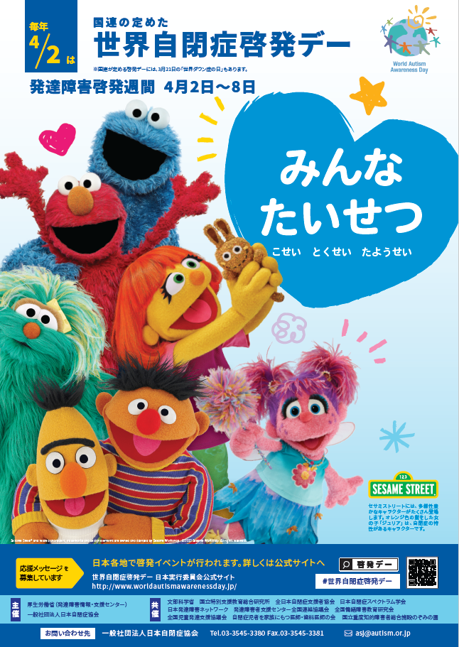 4月2日は、青色のものを身に付けて、自閉症をはじめとする発達障がいの人たちを応援している世界中の人たちとつながりましょう。