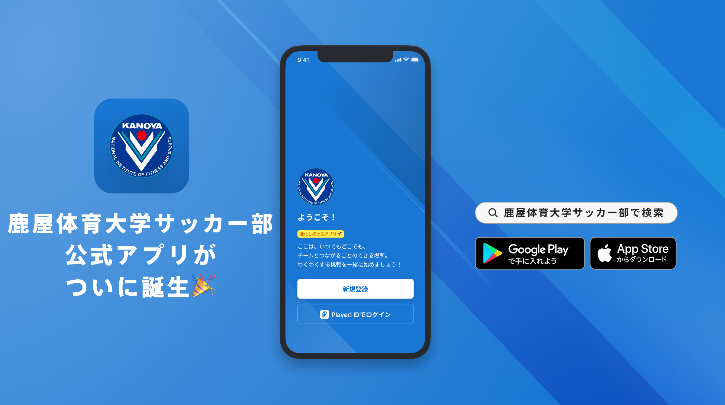 AppStoreもしくはGooglePlayで「鹿屋体育大学サッカー部」と検索!