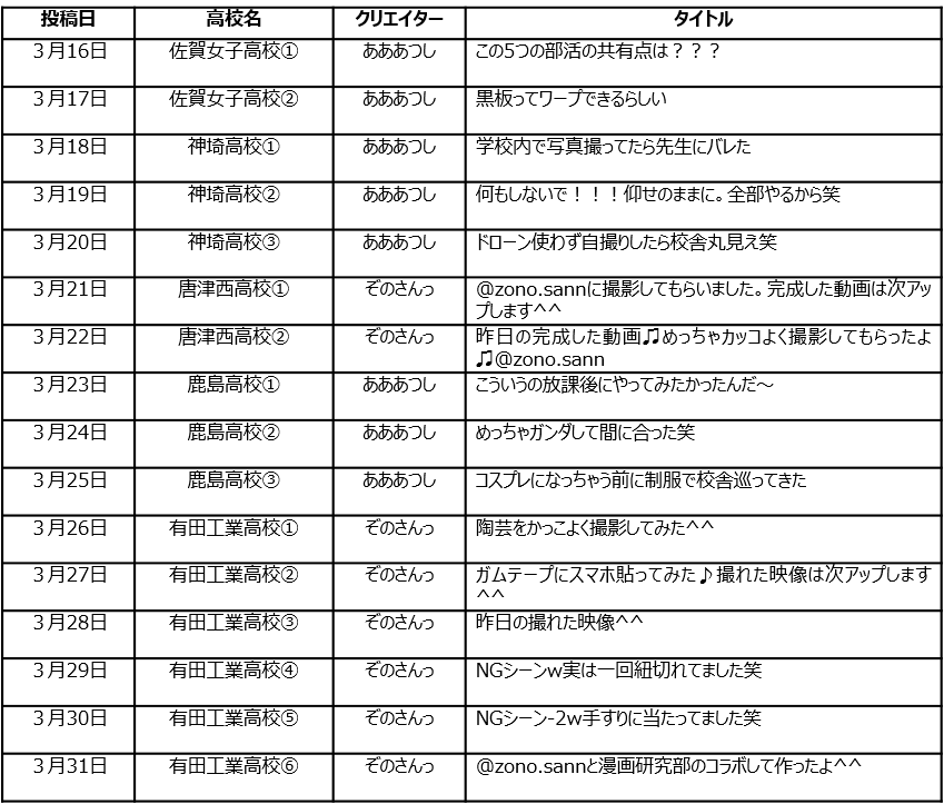 ・内容:「佐賀の高校生の日常を輝かせる動画」をコンセプトに高校生が佐賀県の魅力を発信する動画です。
