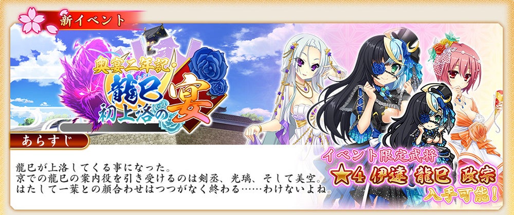 ▼期間限定!『奥宴二年記・龍巳初上洛の宴』イベント開催!