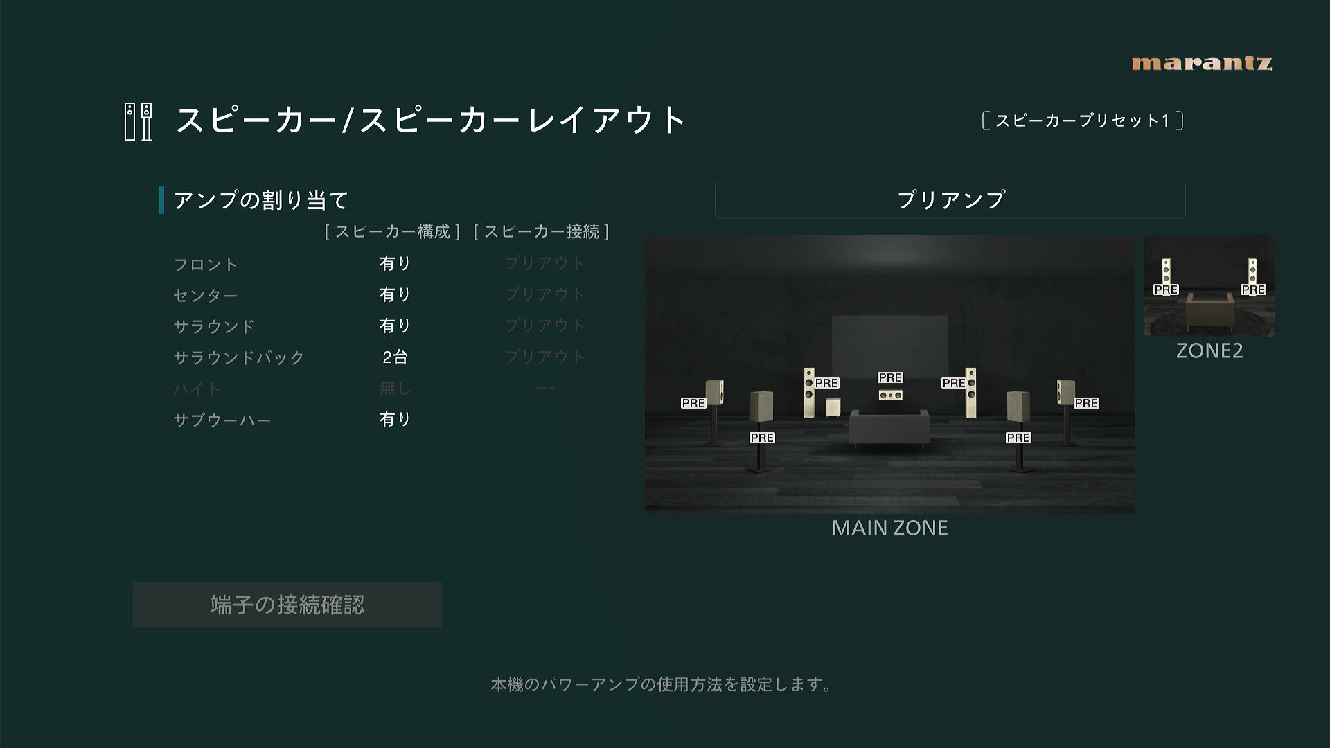 - 「アンプの割り当て」、「スピーカー構成」、「スピーカーの接続」の設定項目を1画面に集約し、複数の画面を行き来することなく設定ができるようになりました。