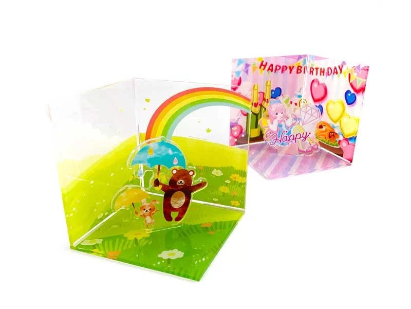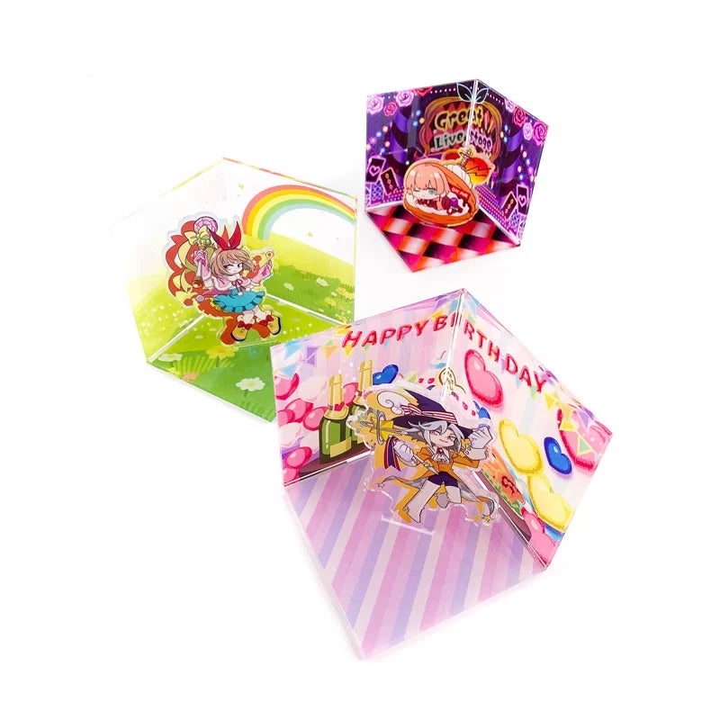 当店で作成いただいたアクリルフィギュア(アクスタ)専用の立体型アクリルステージは、アクスタの美しさを最大限に引き出すために設計された背景ジオラマです。
