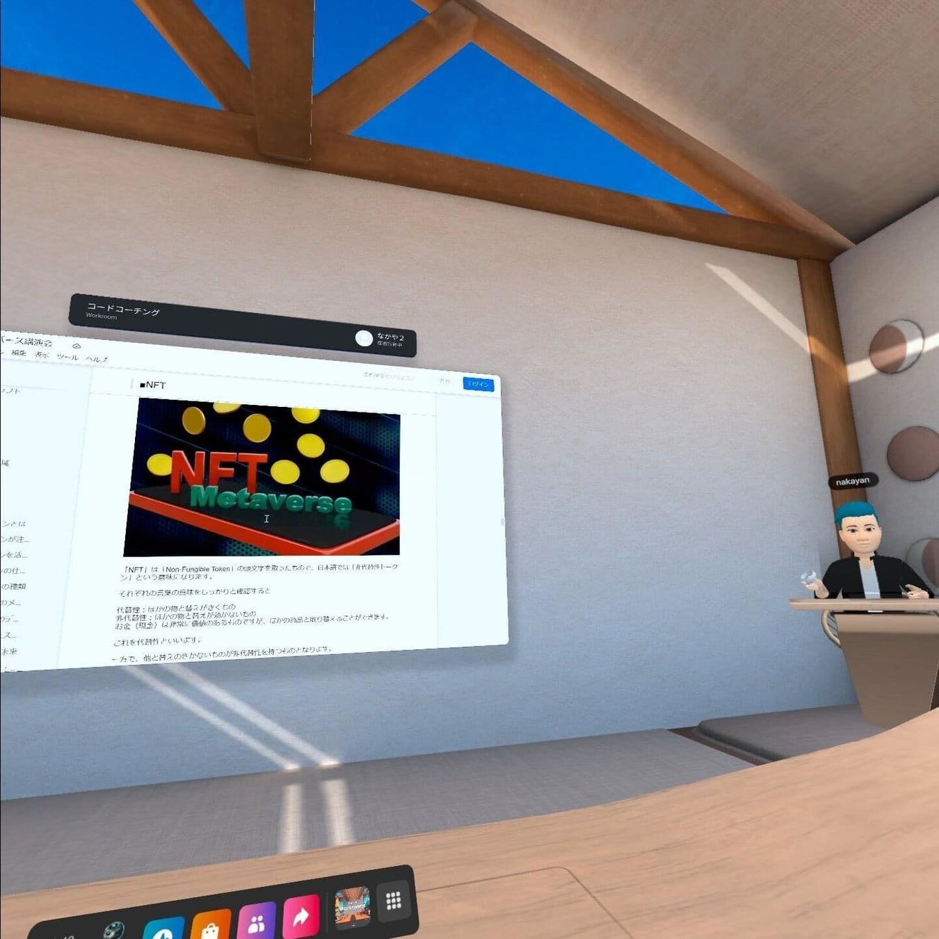 講演会はWorkroomsというメタバース上のツールを用い、参加者は最先端の技術を体感しつつ、後半は参加者同士でメタバースに関する議論を行い、お互いの知見や交流を深めました。