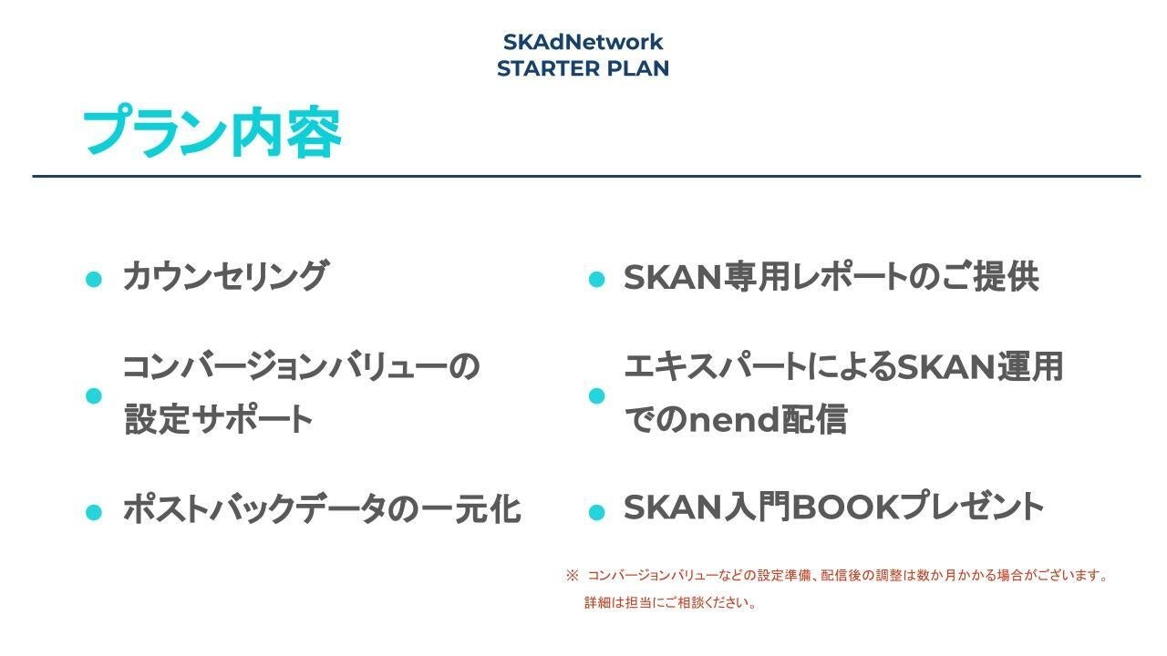 ※「SKAN STARTER PLAN希望」の旨をお知らせください。