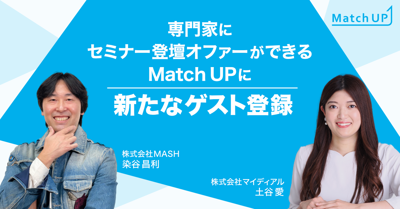 多くの企業様、専門家の方とのお取引があり、自社のマーケティングノウハウを活かし、このような課題を解消するため、専門家にセミナー登壇オファーができるマッチングプラットフォーム「Match Up」の提供を開始いたしました。