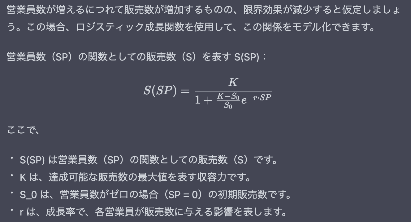 *営業人数とプロダクト販売数の関係性を数式で仮説立案する様子。