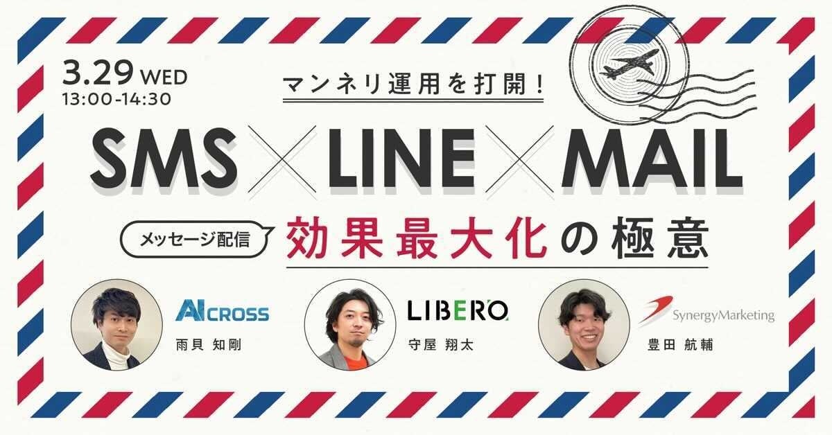 本ウェビナーでは「SMS・LINE・メール」のマーケティング支援を行うAI CROSS、ギブリー、シナジーマーケティングの3社が各チャネルの配信効果をさらに高める方法と、チャネルをかけ合わせて成果をあげる手法についてお伝えします。