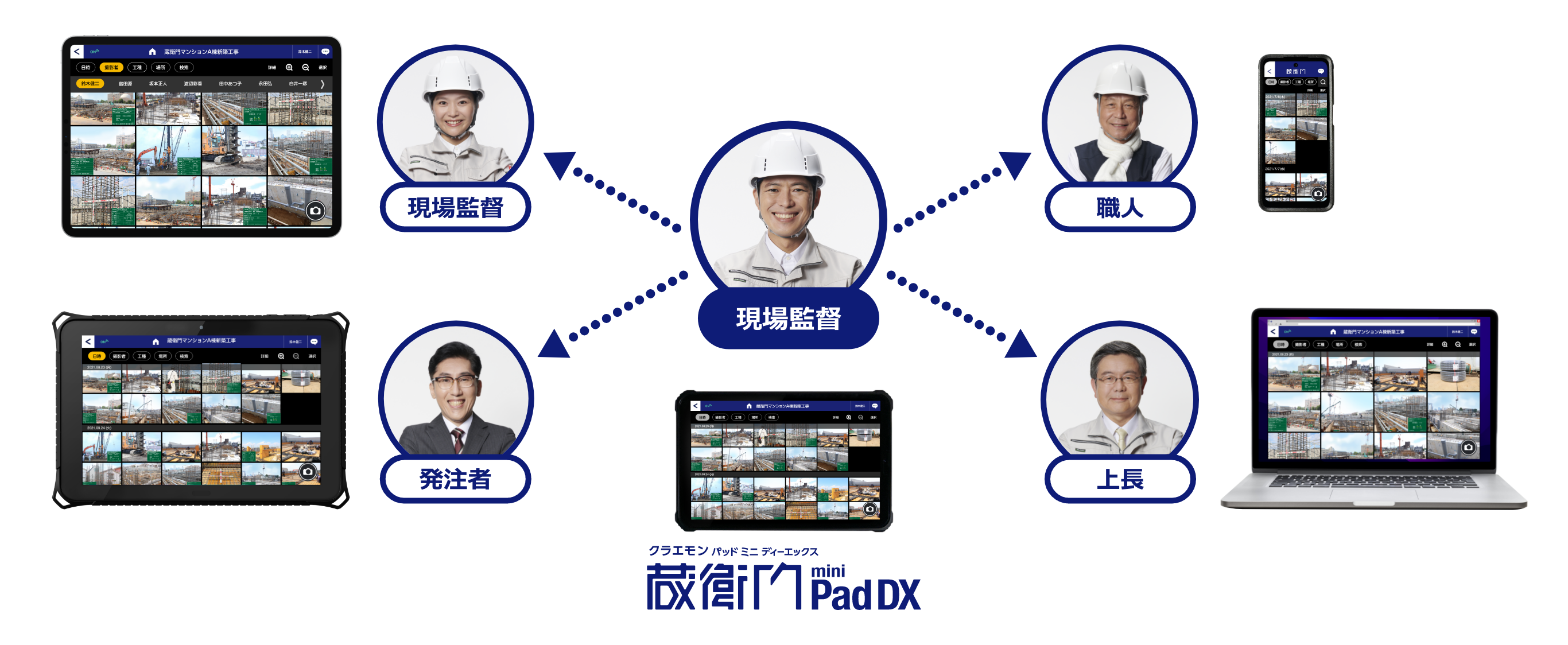 - 工事関係者で工事写真、電子小黒板、図面をリアルタイム共有 ※1