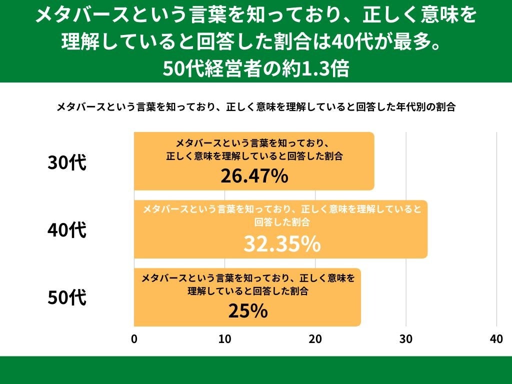 【メタバースという言葉を知っており、正しく意味を理解していると回答した割合は40代が最多。50代経営者の約1.3倍】