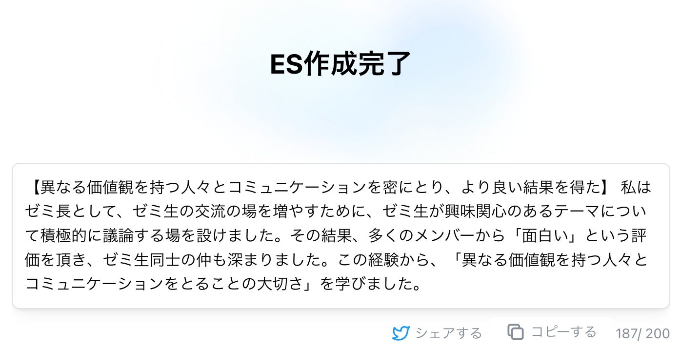 このサービスを利用することで、ESの書き方に悩む学生、文章の書き出しや構成に悩んでいる、書くのが面倒だと考えている学生、そして絶賛就活中の学生にとって一筋の光となれば幸いです。