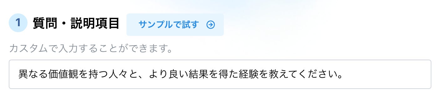 1. 「質問・説明項目」に、エントリーシートで問われている文章を入力します。