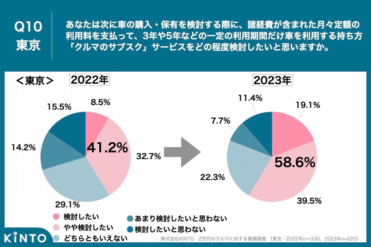 - Q10. クルマの保有形式に「サブスク」を検討したいZ世代、都内は58.6%、地方は37.8%と昨年比で大幅増加に