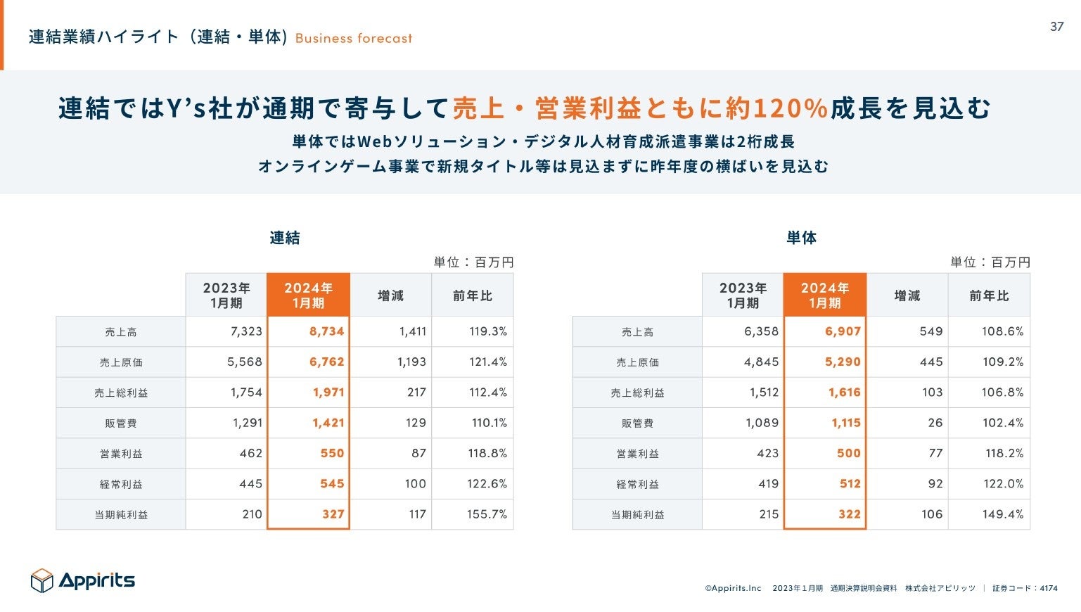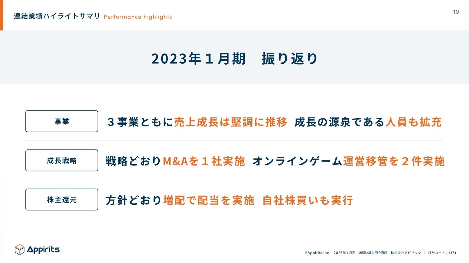 2023年1月期通期 累計 業績ハイライト(決算資料一部抜粋)