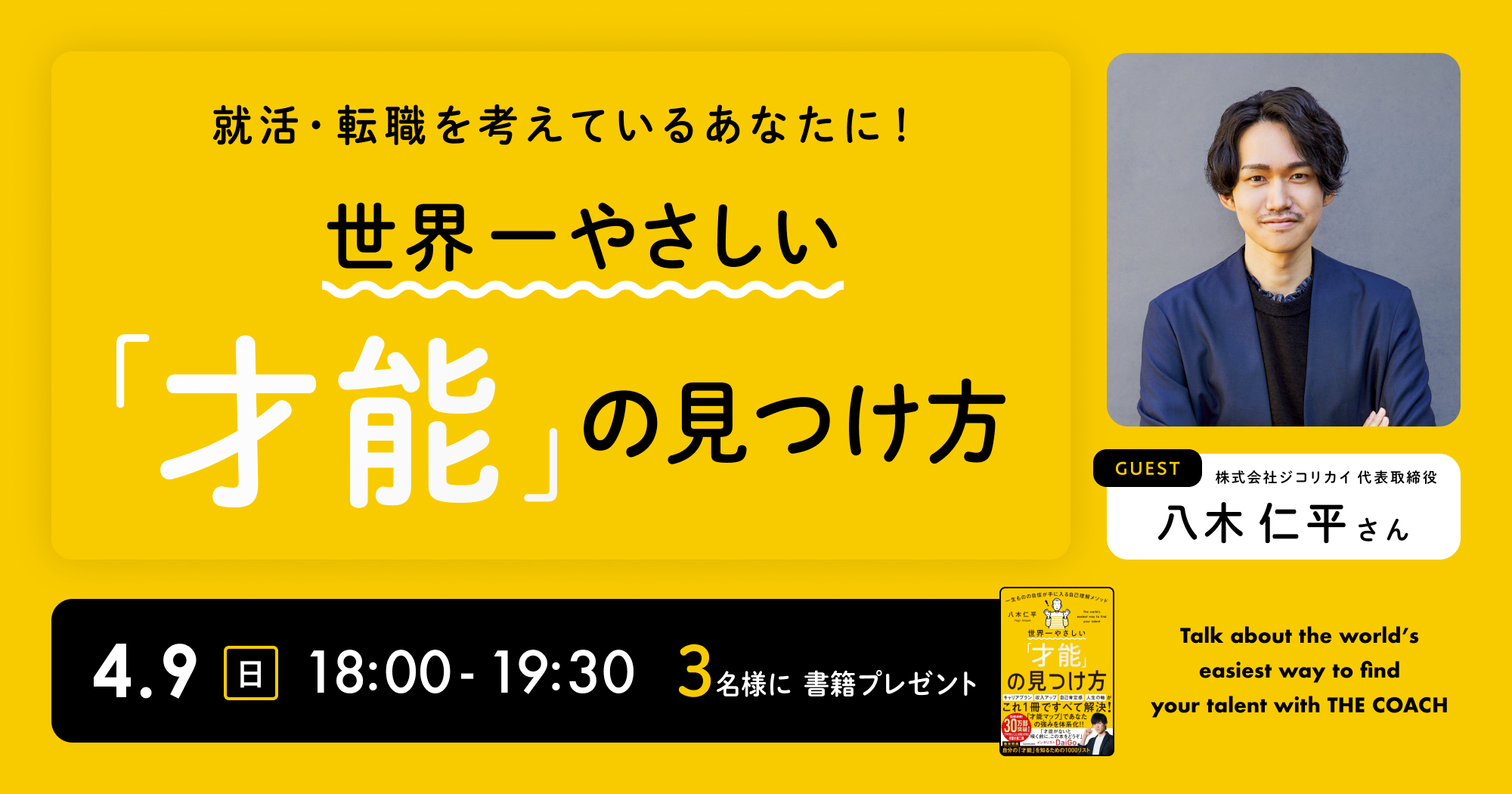 ゲストにお招きするのは、株式会社ジコリカイ代表の八木仁平さん。THE COACH Academyの卒業生でもある八木さんと、THE COACH代表取締役のおかちゃんとひとみんが就職・転職において起こりがちな悩みや誤解を深掘っていきます。