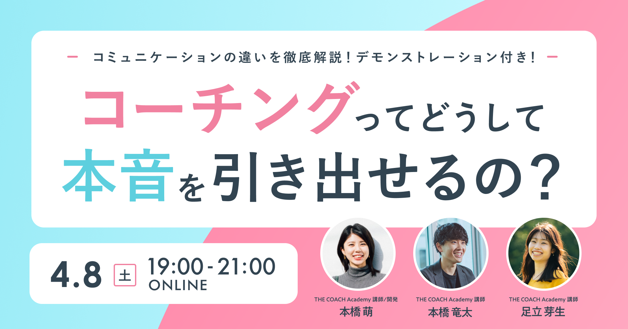 4月8日:コーチングってどうして本音を引き出せるの?コミュニケーションの違いを徹底解説!!デモンストレーション付き