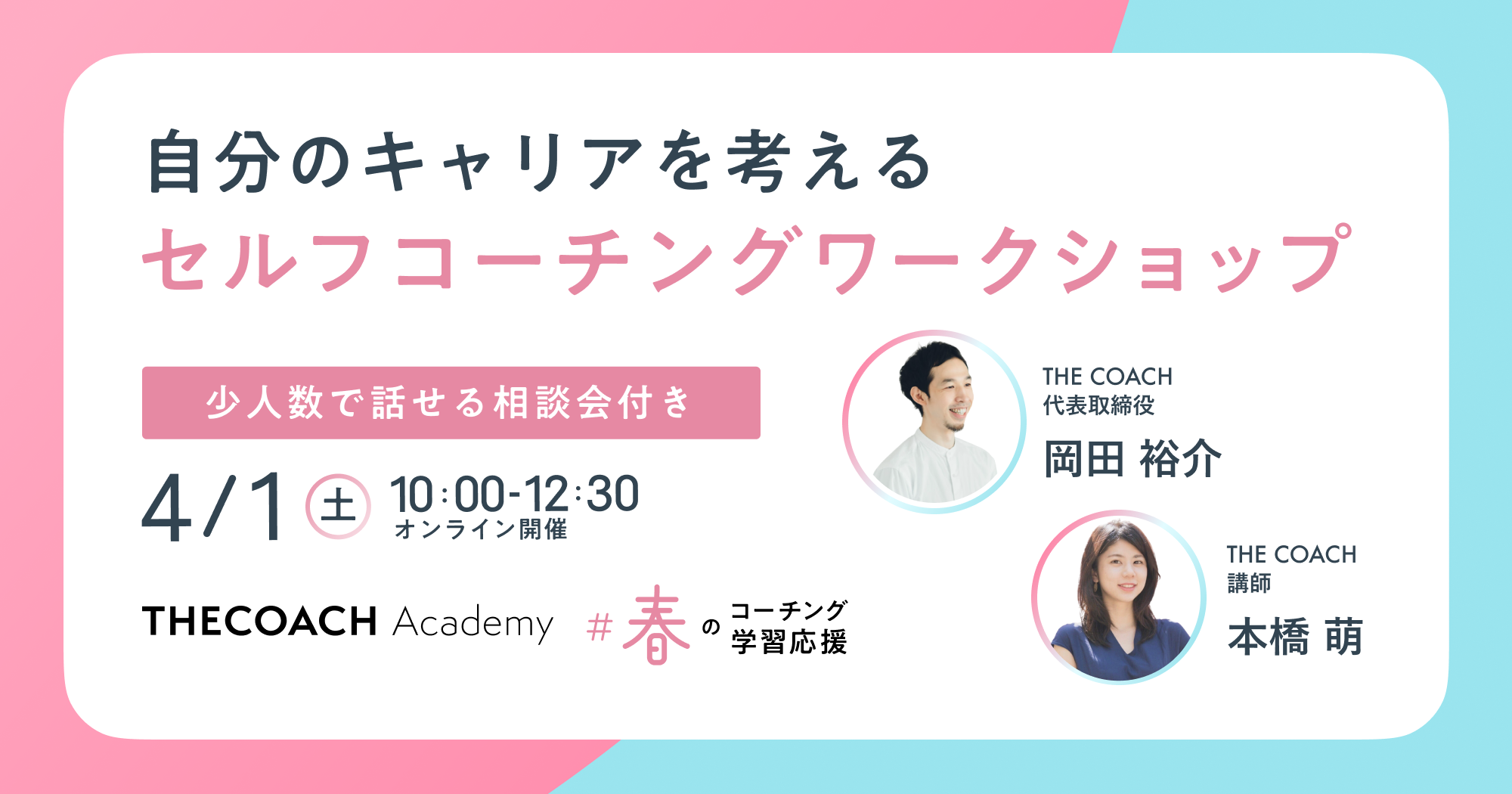 4月1日:【少人数で話せる相談会付き】自身のキャリアを考えるセルフコーチングワークショップ