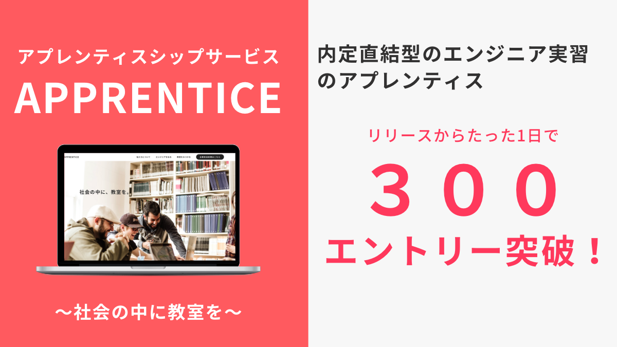 新たなエンジニア教育プログラム『アプレンティス』が公開から1日でエントリーが300名を突破しました。