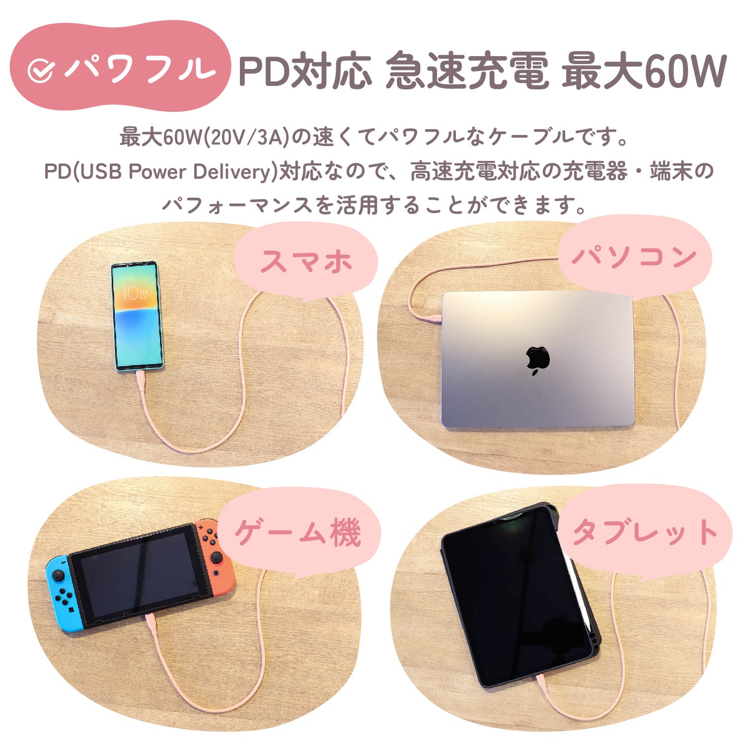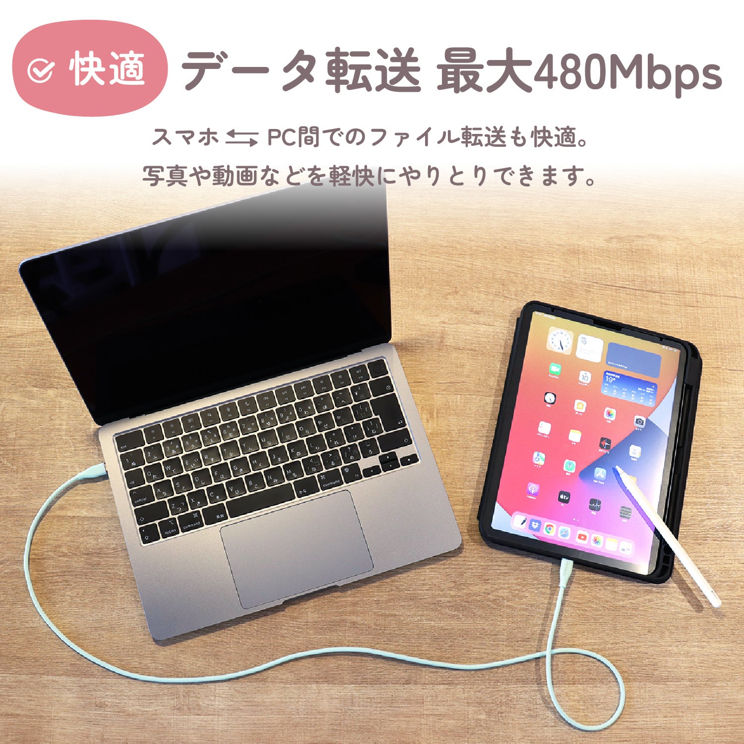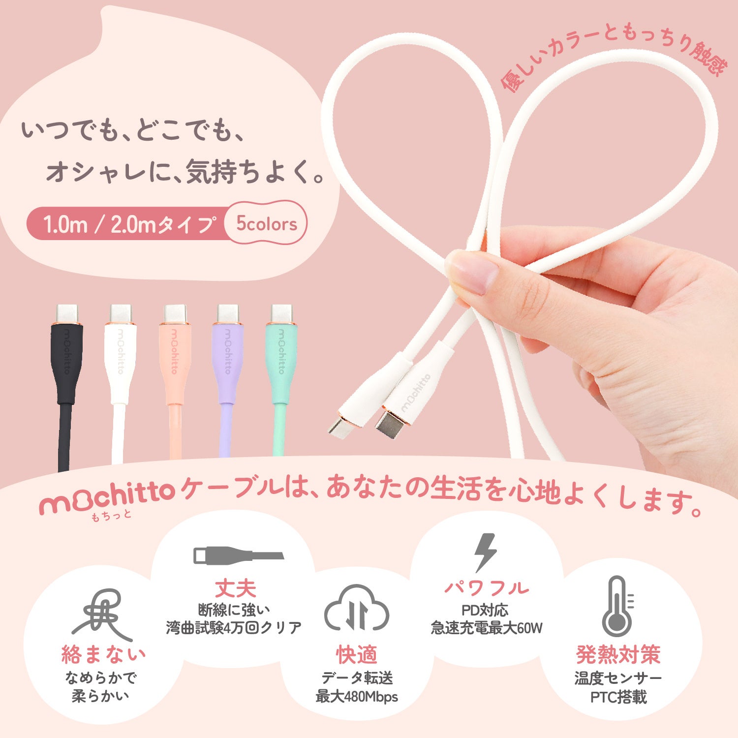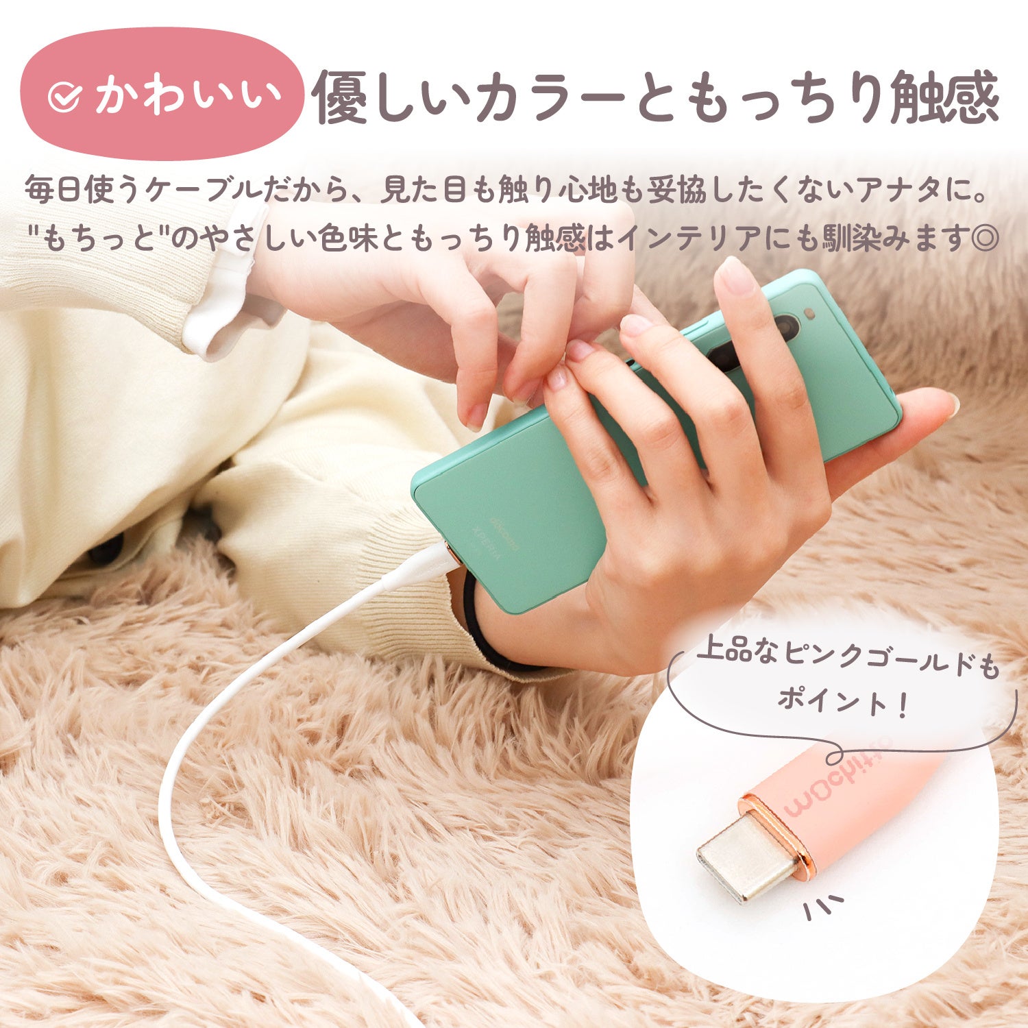 【mochitto -もちっと-】タイプC to タイプCケーブルはオシャレな見た目だけでなく、機能性にもこだわっています。