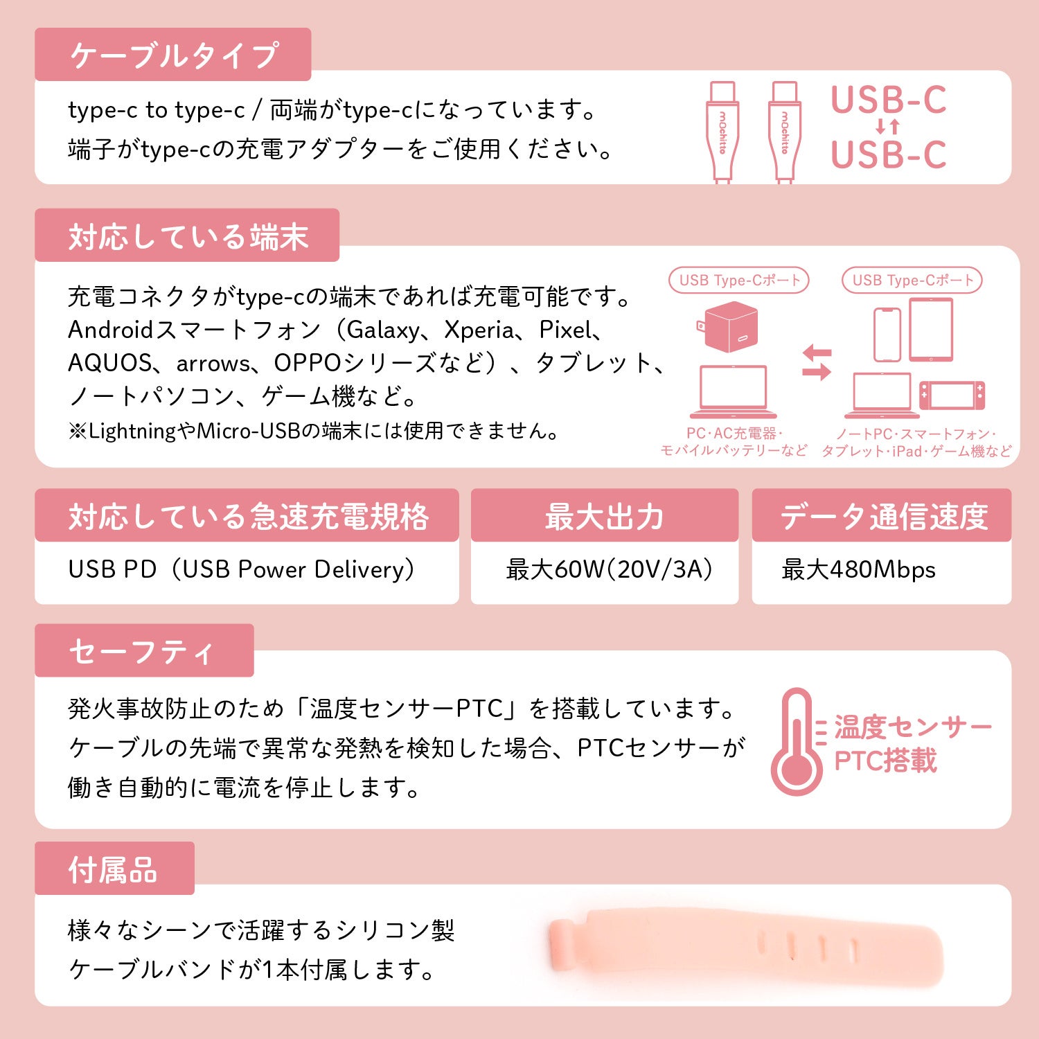 - 【mochitto -もちっと-】Type C to C シリコン ケーブルの仕様