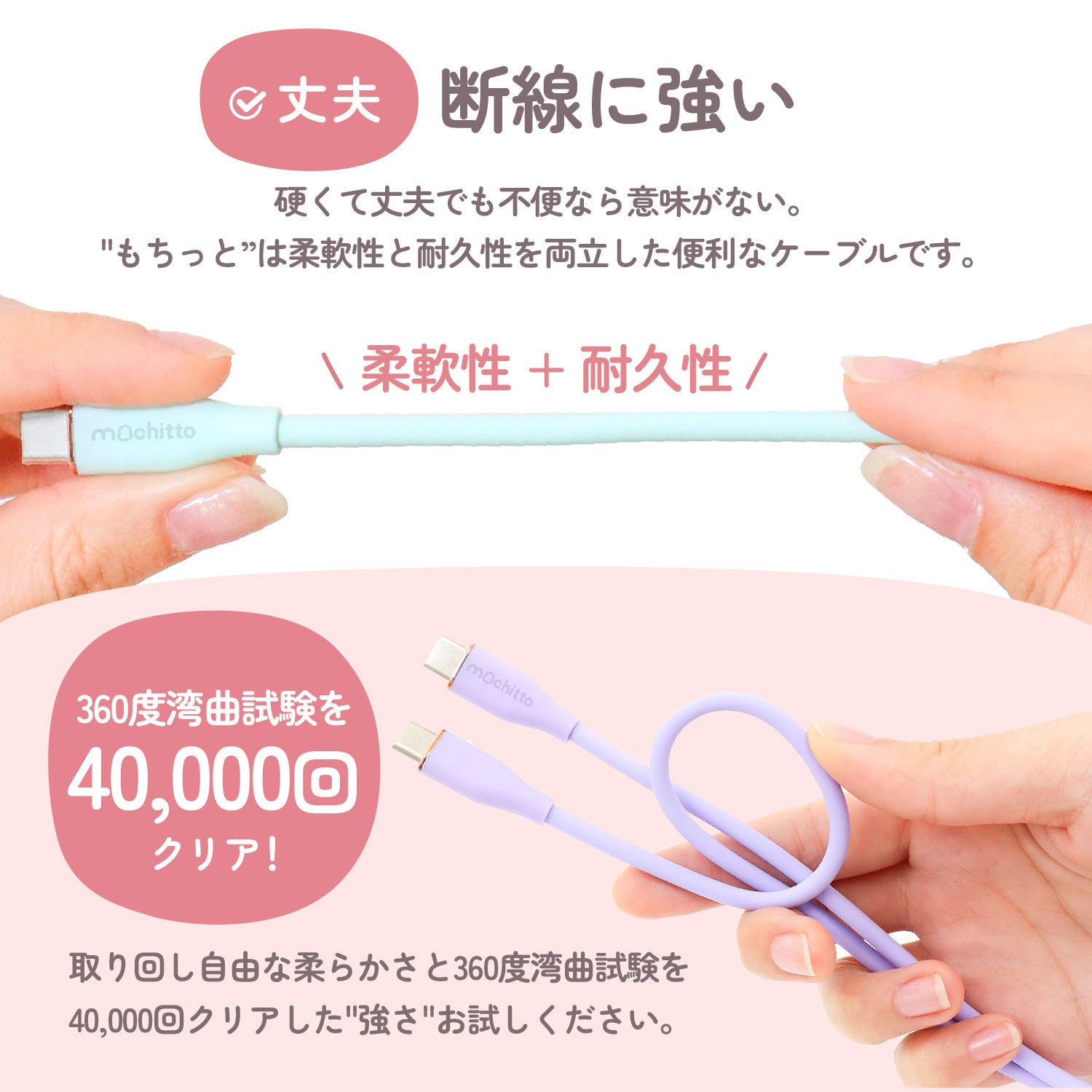 - 【mochitto -もちっと-】Type C to C シリコン ケーブルの特徴