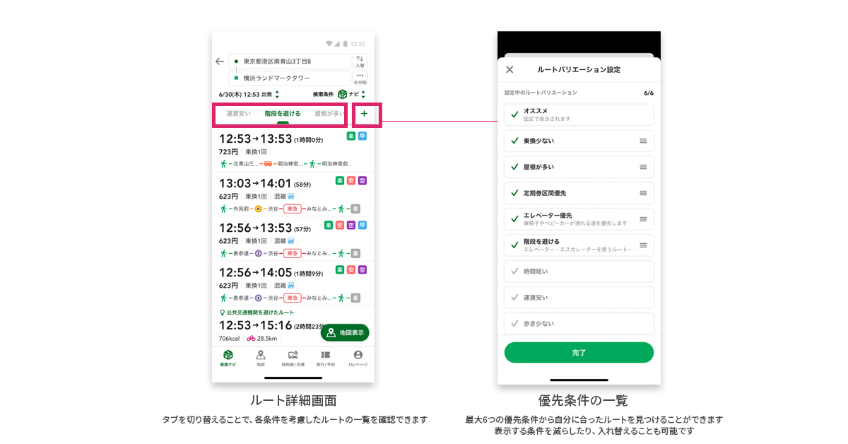 これらの変更により、移動に関する豊富な情報を集約させながらも視覚的に分かりすく整理することで、ユーザーは状況に応じてより最適なルートを選択しやすくなりました。