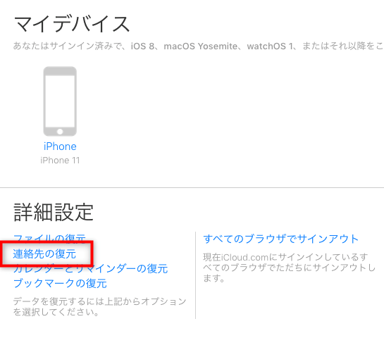 - iCloudの連絡先から復元