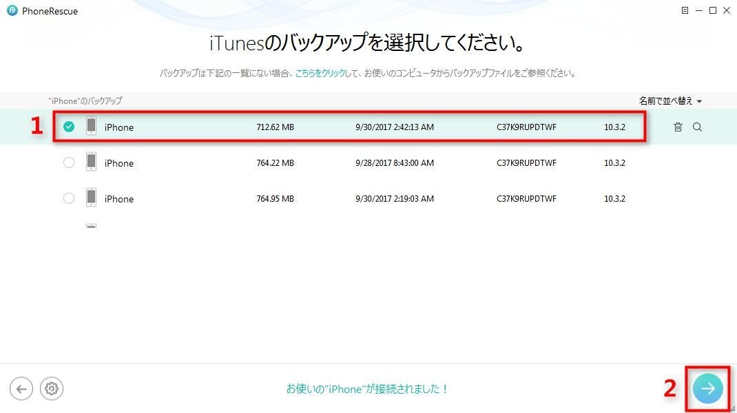 Step 1.PhoneRescueをパソコンにダウンロードして起動します。USBケーブルでiPhoneをパソコンに接続します。